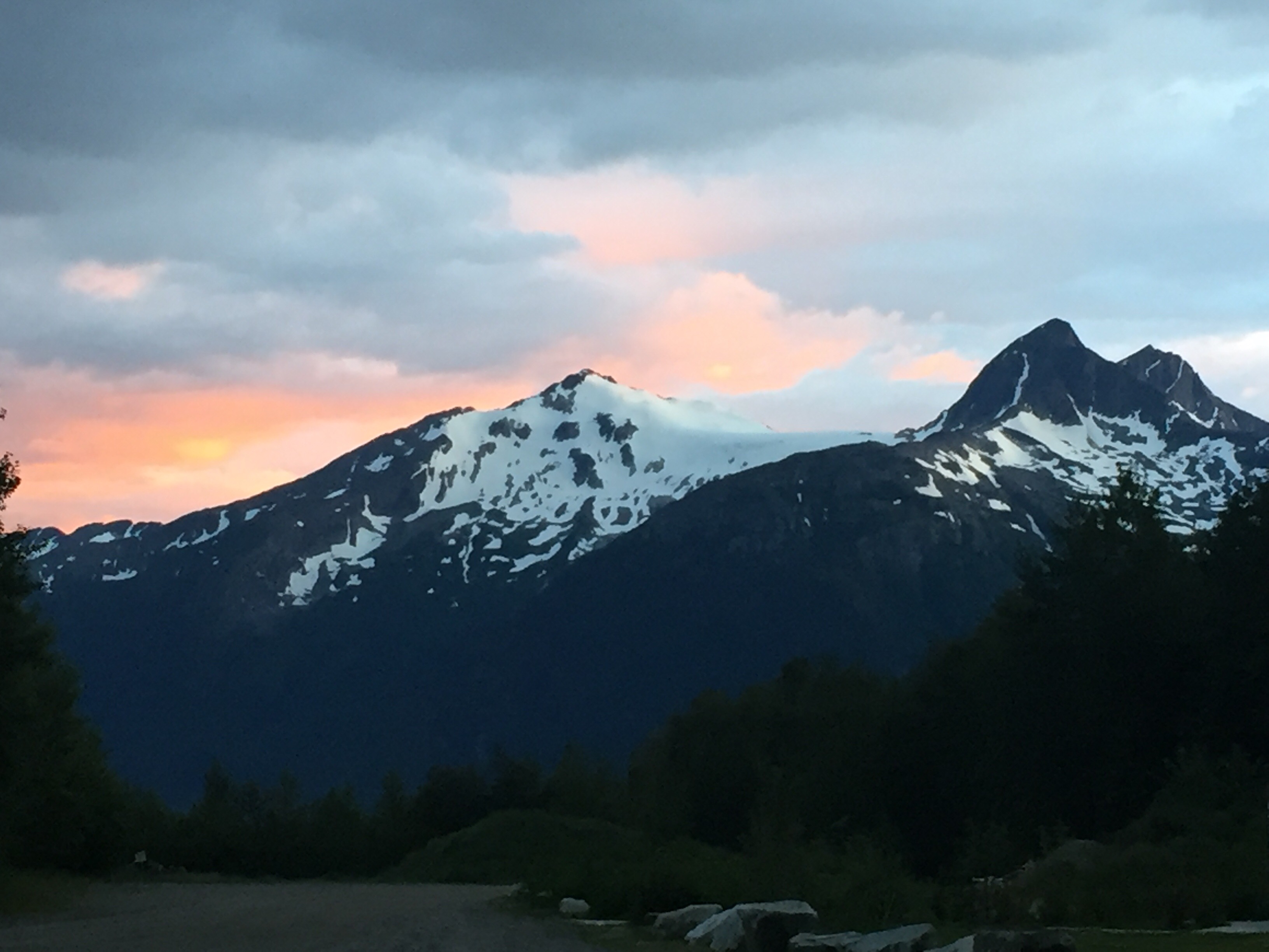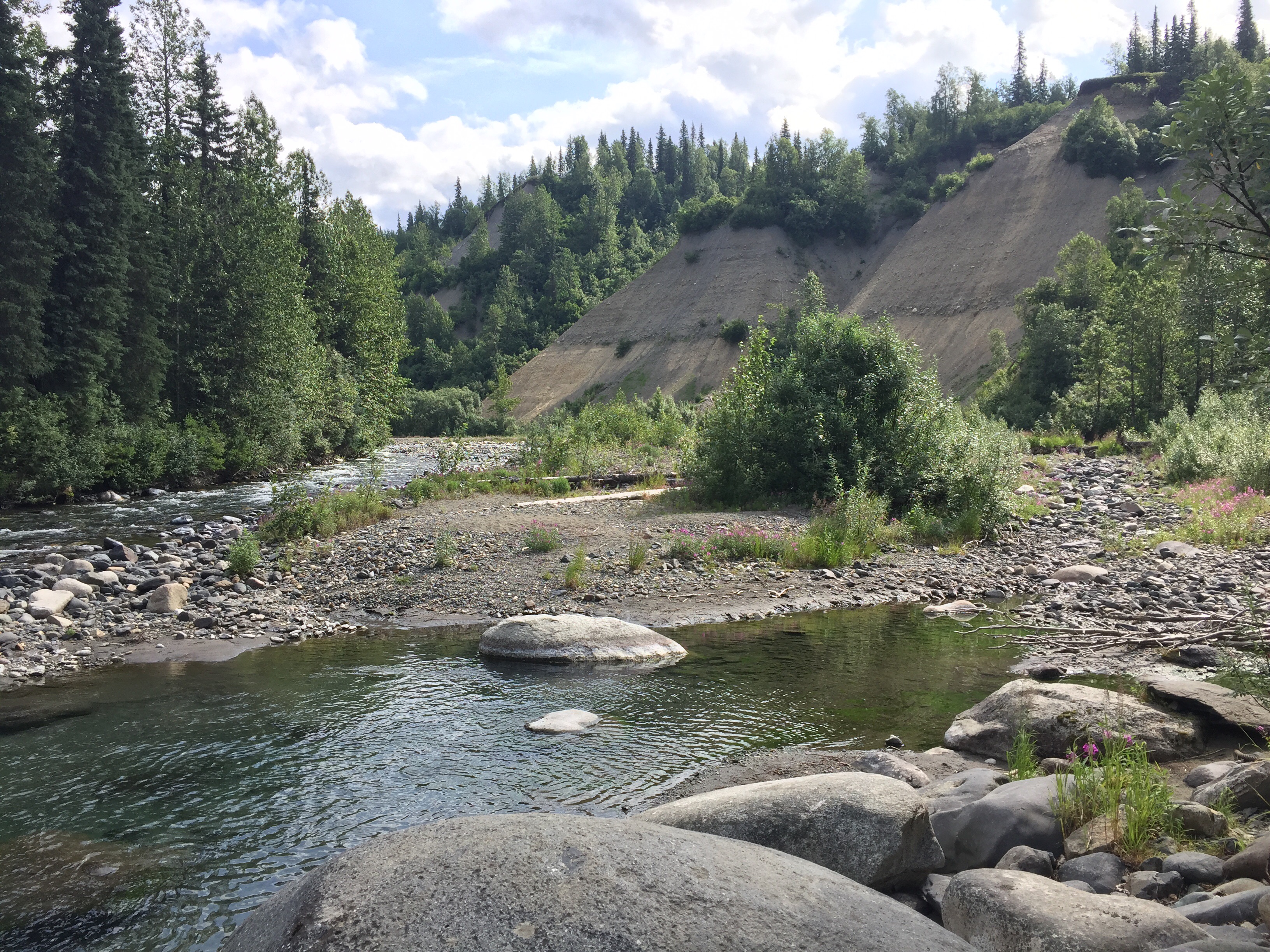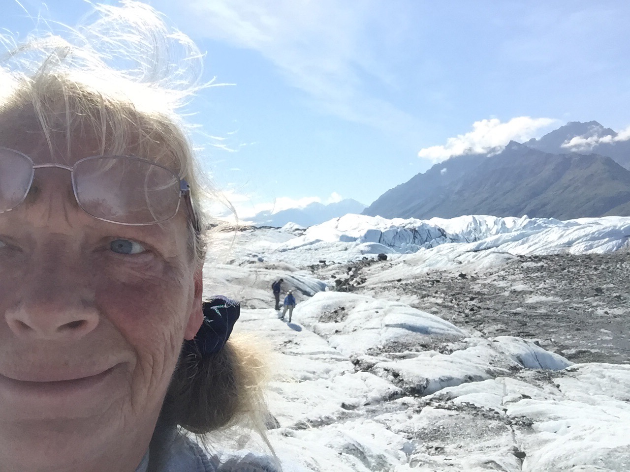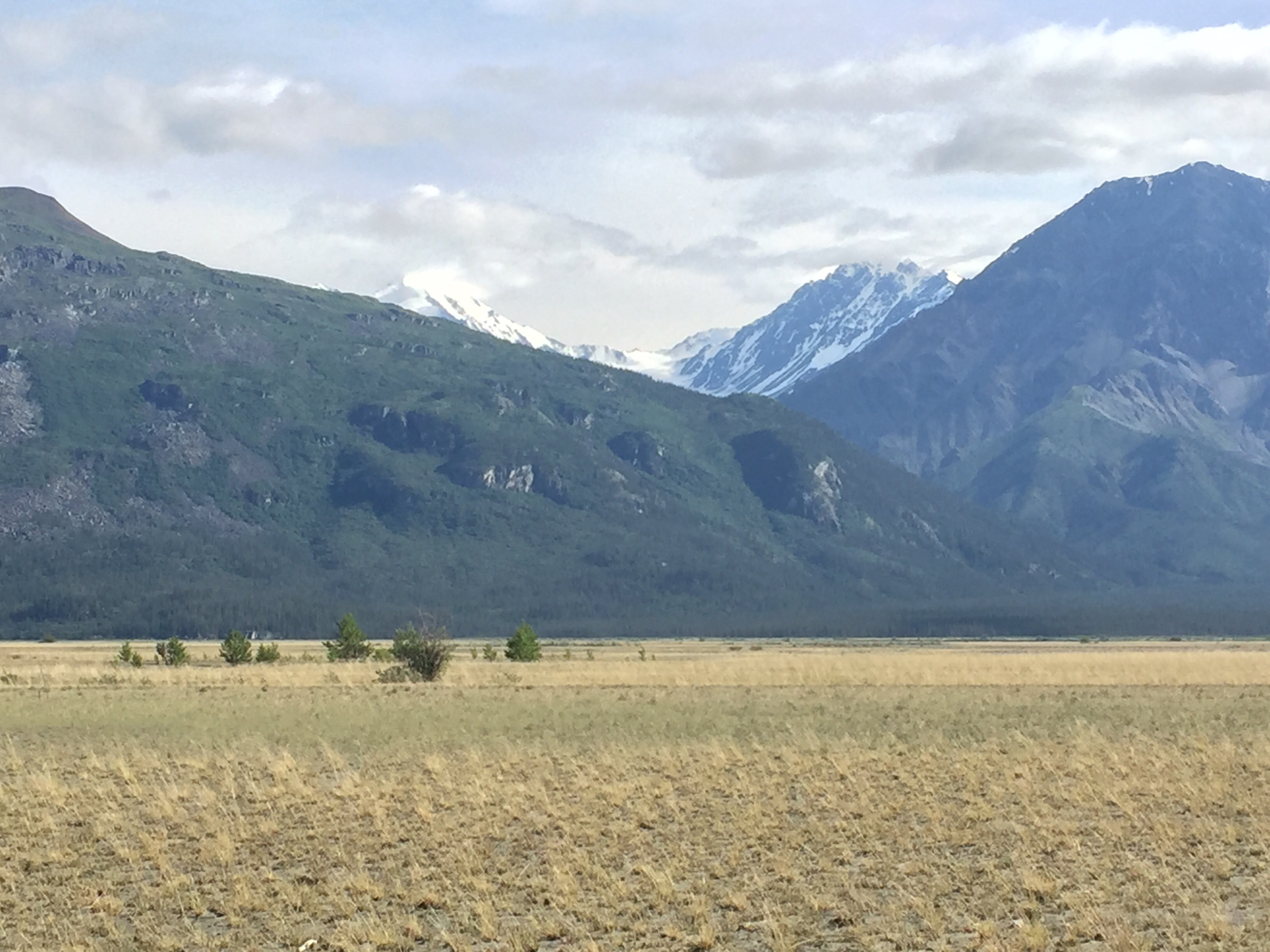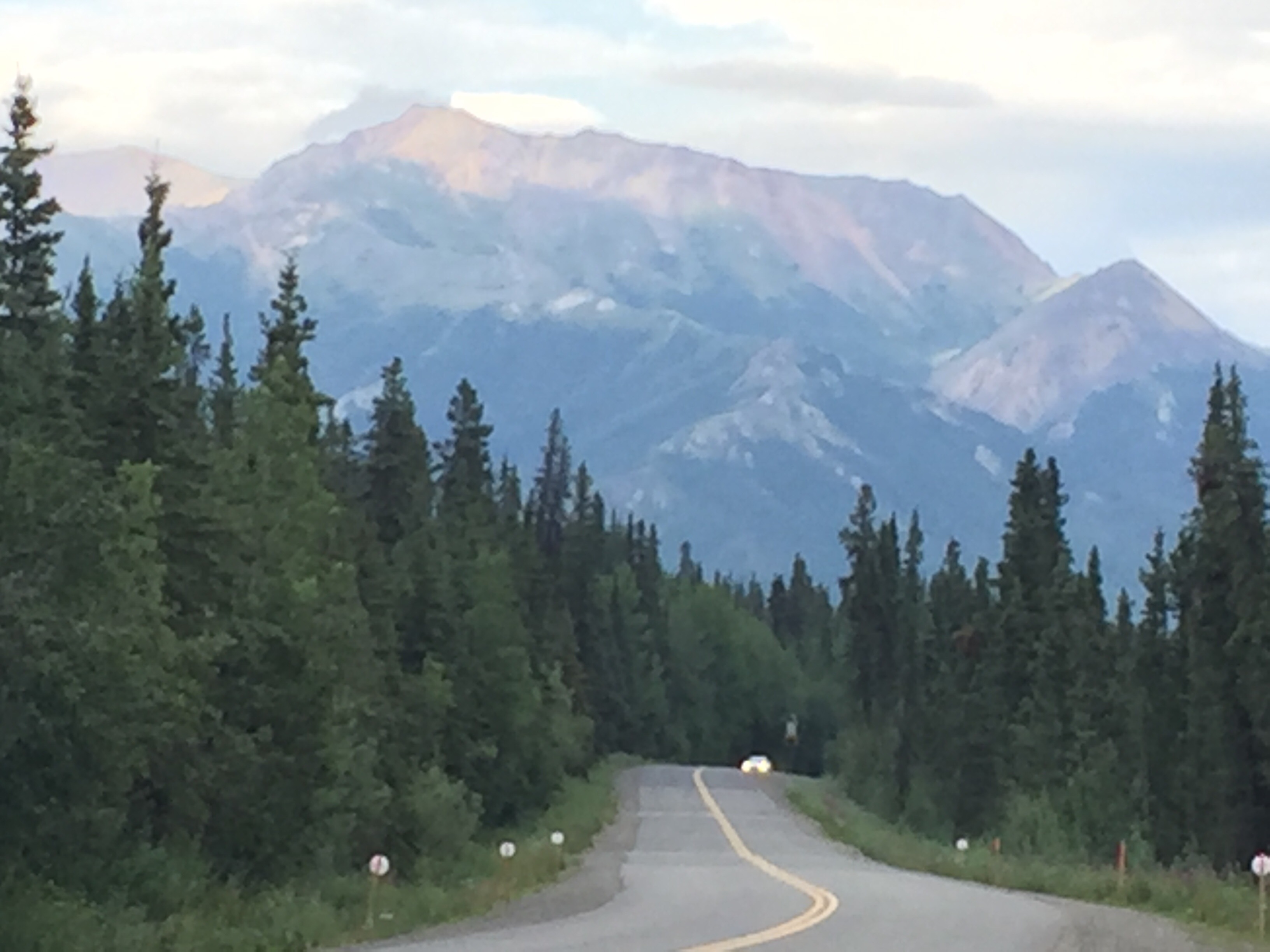 Lots of “No Service” areas here in AK, so I’ll post when I can. Right now sitting outside a Safeway market which has Wifi at 7 am on 7/28. Denali’s two days of bus tours took me out to mile 85 of 92 miles on Park Road; so, I got to see most of what could be seen without hiking into the 6 million acres that are Denali wilderness. Nice companions and drivers on bus tours sharing warmth and their own humanity at tender levels. All is in Divine and perfect order right now! While Mt McKinley/Denali was cloud covered, I had seen her previously on the journey to Denali. So, I got to enjoy everything else-the surrounding mountains, valleys, canyons, rivers/ creeks/ lakes, wildlife, wildflowers, trees/ bushes/ grasses, braiding of rivers, more stones than one can imagine, smell of really fresh air, sounds of the wilderness in water/ wind/ wildlife/ and companions on the journey. It amazes me that wilderness does have its own order and randomness at the same time-perfectly aligned trees and rock formations and totally random occurrences of same-but, I have limited human observations while Mother Earth is perfection. There are 130 active volcanoes in Alaska! Denali is considered Arctic desert-who knew? Not I, for sure. And permafrost, areas below surface land, that never thaw out, so that before building a road the area must be dug down to permafrost level so it can thaw over a couple of years! A good portion of Chena Hot Springs Road had many series of dips in the Road which made for an interesting roller coaster type of drive with scenic beauty to knock my socks off. Relaxing in the hot springs for many soaks, then napping, and returning for more soaks revived my body and soul. Chena Hot Springs with lodge and campgrounds draws people from all over the world speaking their native languages which gets me into a global perspective, which I appreciate. The Aurora ice Museum topped off the day with magnificence! The museum is kept at a constant 25 degrees, so the sculptures don’t melt! It has a bar which serves Appletinis in glasses made of ice! It has a chapel, where world-reknowned ice sculptors couple married! It has its own igloo with an ice xylophone, bedrooms with caribou pelt coverings for seating. Colored lighting throughout adds to the ambiance. Amazing!