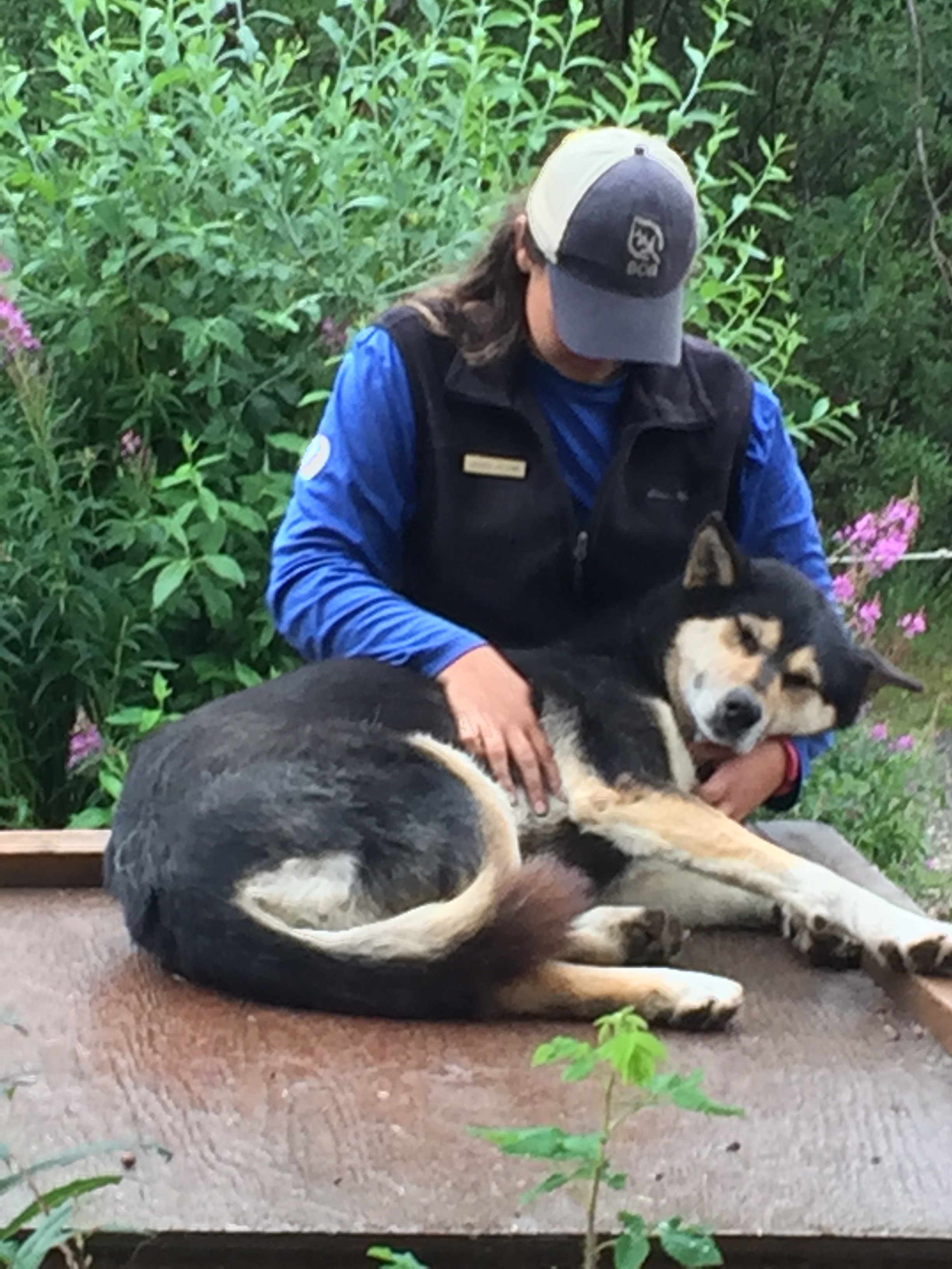Back to Denali. The Dog sled demonstration and kennels are fabulous! I didn’t realize that Iditarod dogs are bred for speed, while others are “working” dog teams, that haul, as part of a team, 40+ pounds each on missions. At Denali, in winter with temperatures colder than 40 degrees below zero, they haul rangers and materials needed to various sites in the park, and remove/bring back items needing to be removed from their current locations. Dogs in the team love their work! The mushers, people who work with dog sled teams, seem to love it, also, as was stated in a Ranger presentation about the 4 females and 1 male Ranger on the Winter Team. No hot showers for 3 months? Hmmm. Want Water? Melt dry snow. Want heat? Start a fire. Want food? Bring it with you. That’s really adventure! Hear nothing, still and quiet. No technology or communication with anyone but team members and radio communication with home base operations for 3 months. Talk about isolation! Oh, working sled dog teams don’t have dominant dogs; the dogs are put in different positions and rotated-can humans learn something from this approach? Okay, talked out, rather typed out. Y’all enjoy now, as it is all we truly ever have. PS- working sled dogs retire after 9 years to be adopted by loving caregivers residing in really cold places. Ten-minute showers obtained by purchase of $4.50 token in the shape of a bear head! I used outdoor electric outlet at Riley Creek Mercantile to charge phones and heat decaf coffee water in hot pot. Denali has its own USPO where the postal worker agreed to hand stamp postcards for me; postcards required additional postage and stamps can be overlapped-who knew?